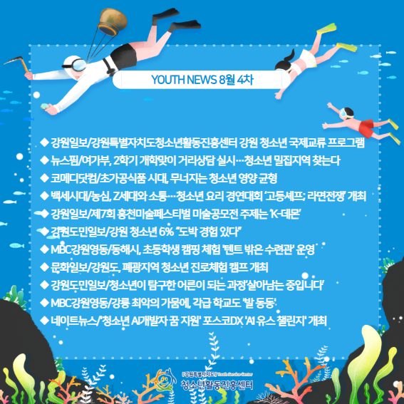 | 제목 | [YOUTHNEWS]유스뉴스 8월 네 번째 소식 | ||||