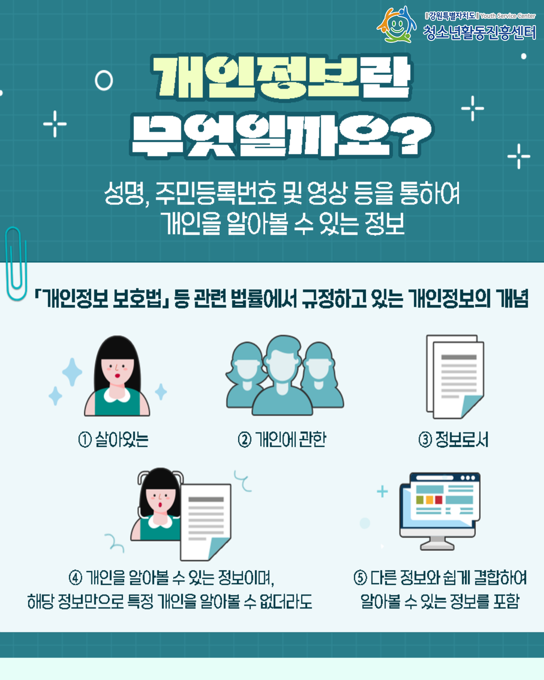 - 이름, 주민등록번호, 영상, 문서 등 나를 알 수 있는 모든 정보