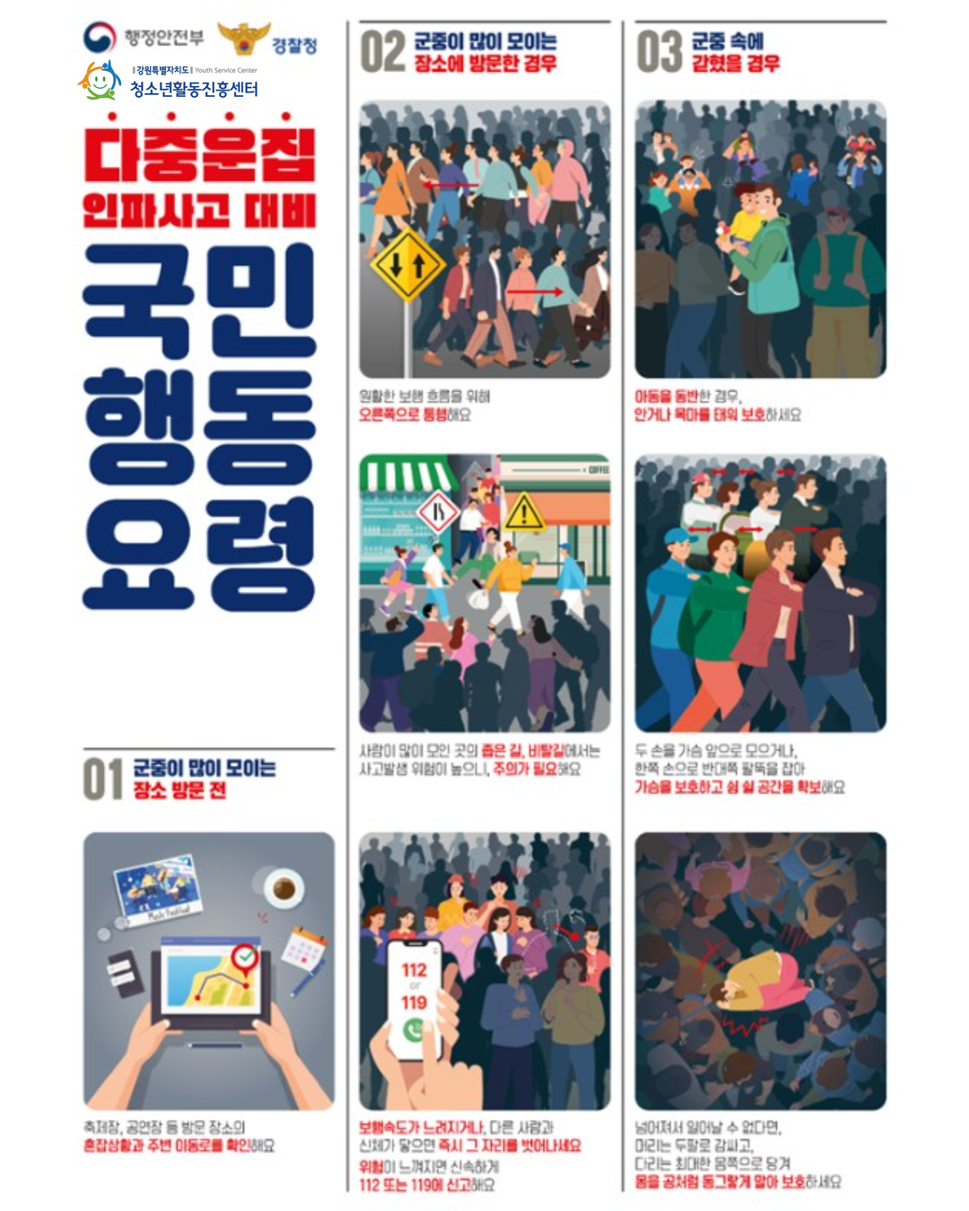 3️⃣ 밀집 속 갇혔다면 – 두 손으로 가슴 보호, 주변과 안전 거리 확보