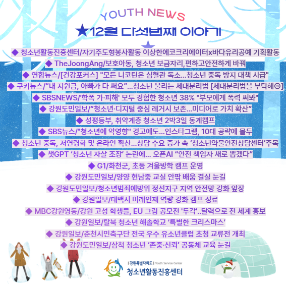 | 제목 | ★12월 다섯 번째 Youth News★ | ||||