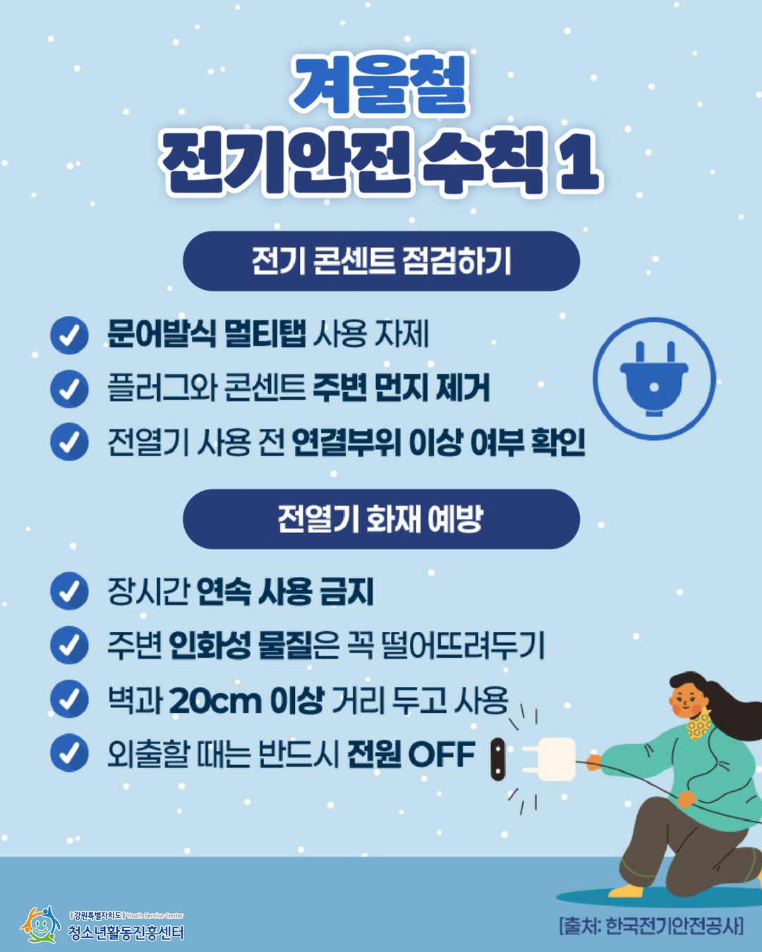🔌 전기안전: 문어발식 콘센트는 NO! 외출 전 전원 OFF 확인!