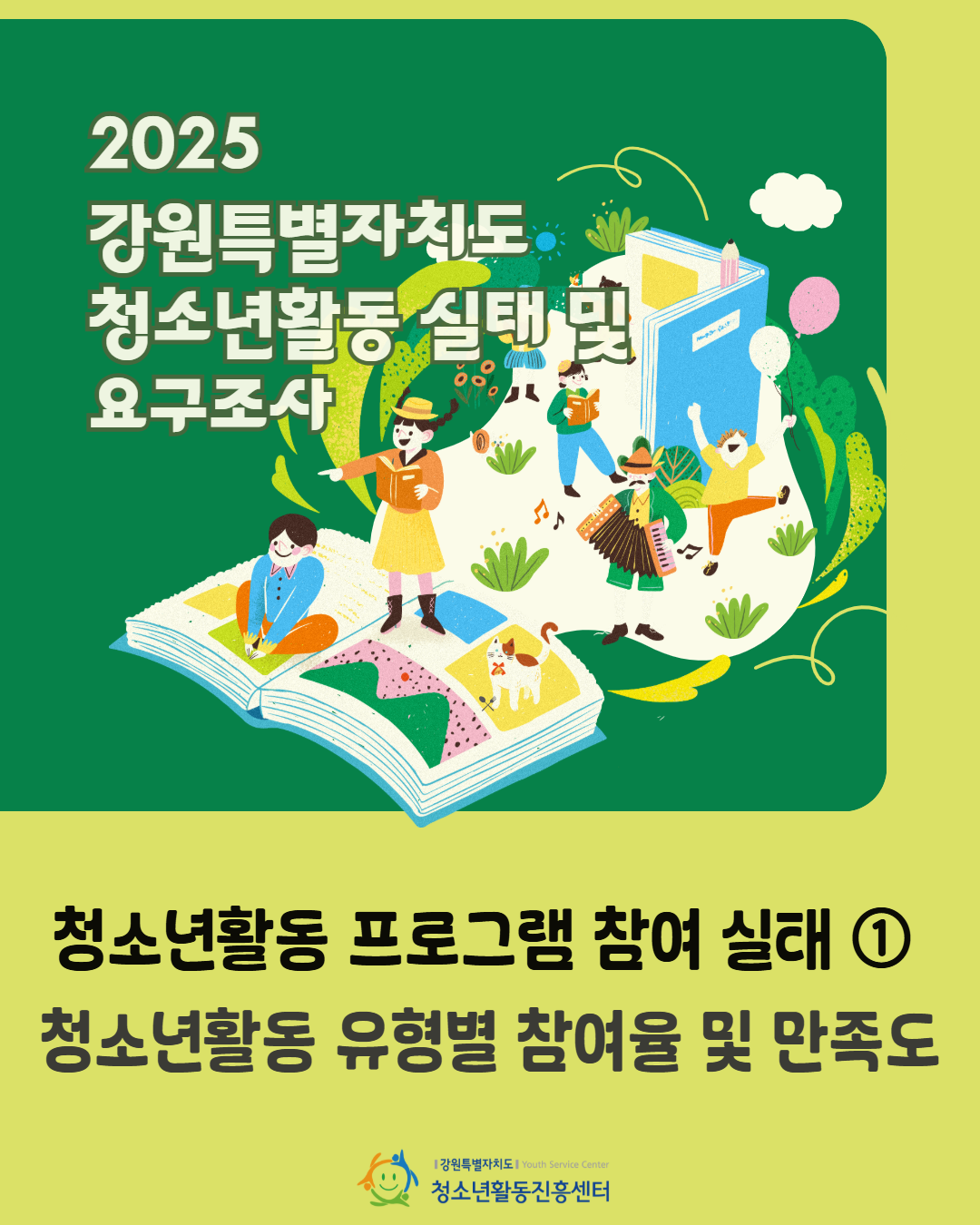 '2025년 강원특별자치도 청소년활동 실태 및 요구조사 - 청소년활동 유형별 참여율 및 만족도'편 입니다.