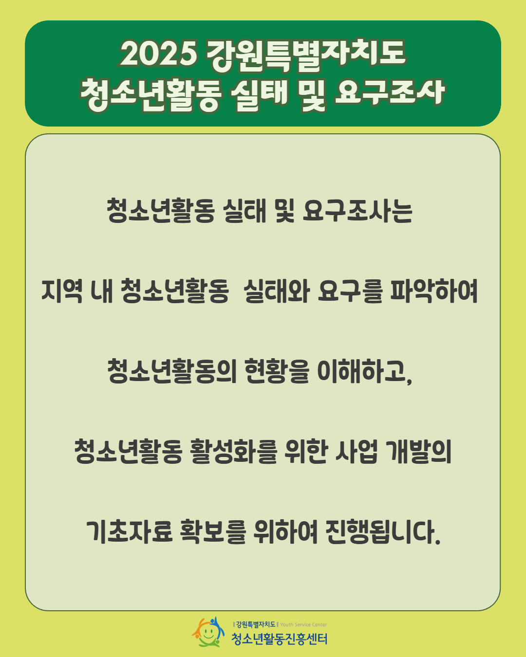 안녕하세요! 강원특별자치도청소년활동진흥센터입니다.