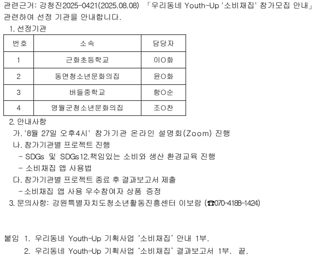 우리동네 Youth-Up 기획사업 ‘소비채집’ 참가기관 확정 안내