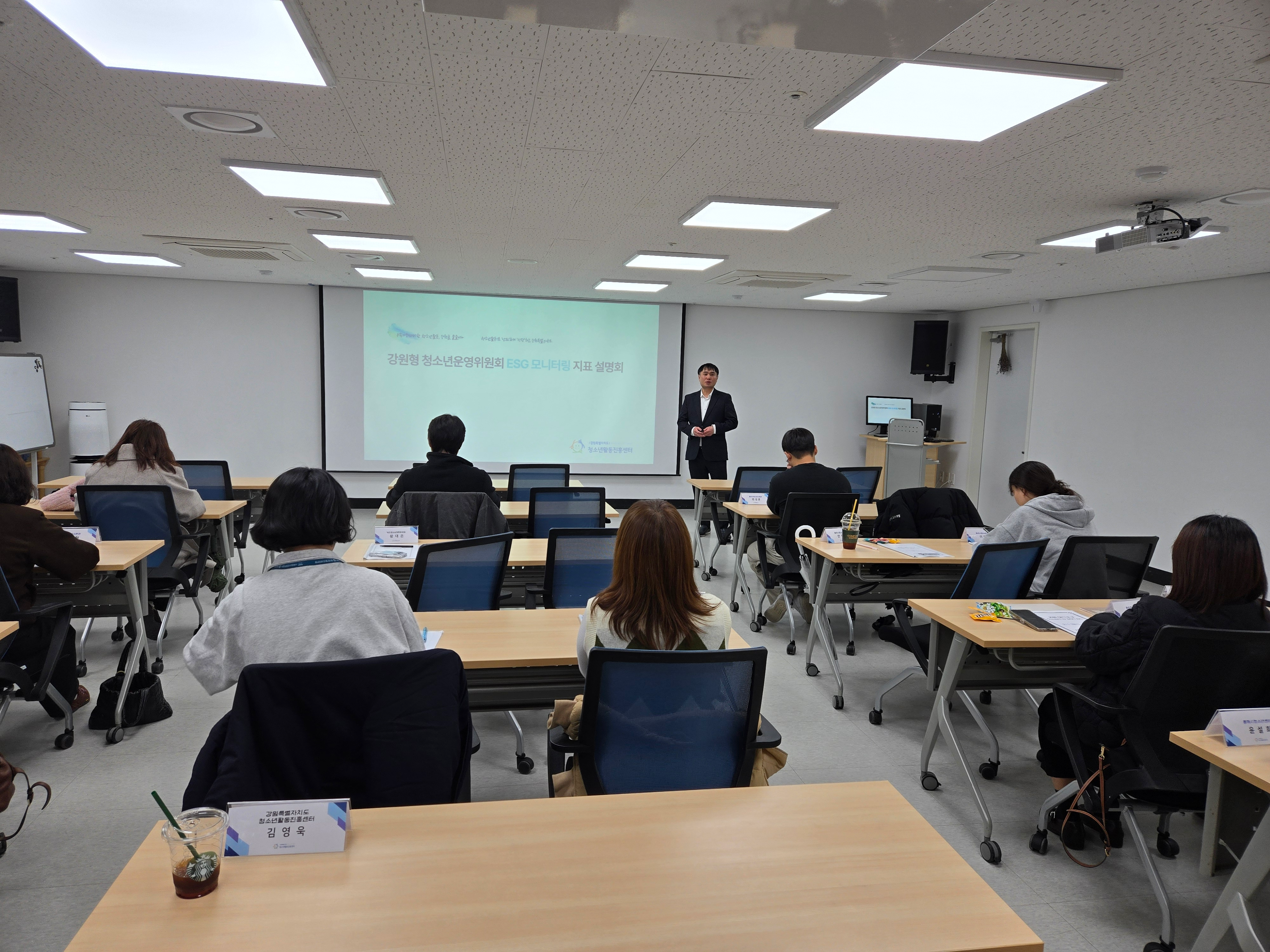 2025년 센터 참여기구 지원 사업 결과 안내, 청소년참여·운영위원회 담당자 회의, ESG 지표 가이드 안내 등의 프로그램이 진행되었습니다.