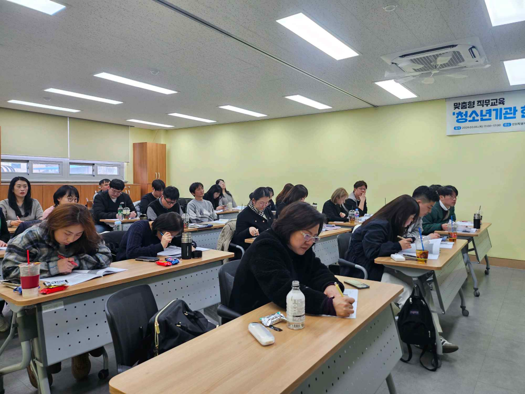 강원특별자치도청소년활동진흥센터는 03월 05일(목), 본 센터 교육장에서 도내 청소년지도자 26명을 대상으로 맞춤형 직무교육 「청소년기관 현장실습 이해」를 운영했습니다.