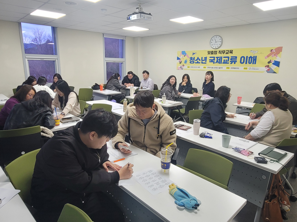 강원특별자치도청소년활동진흥센터는 03월 31일(화), 코이카 월드프렌즈빌리지에서 도내 청소년지도자 27명을 대상으로 맞춤형 직무교육 「청소년 국제교류 이해」를 운영했습니다.