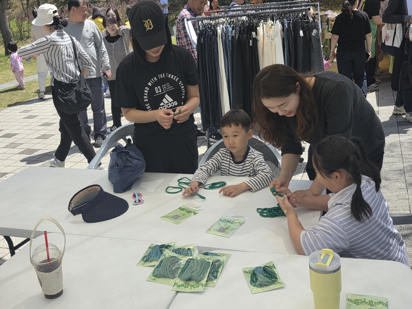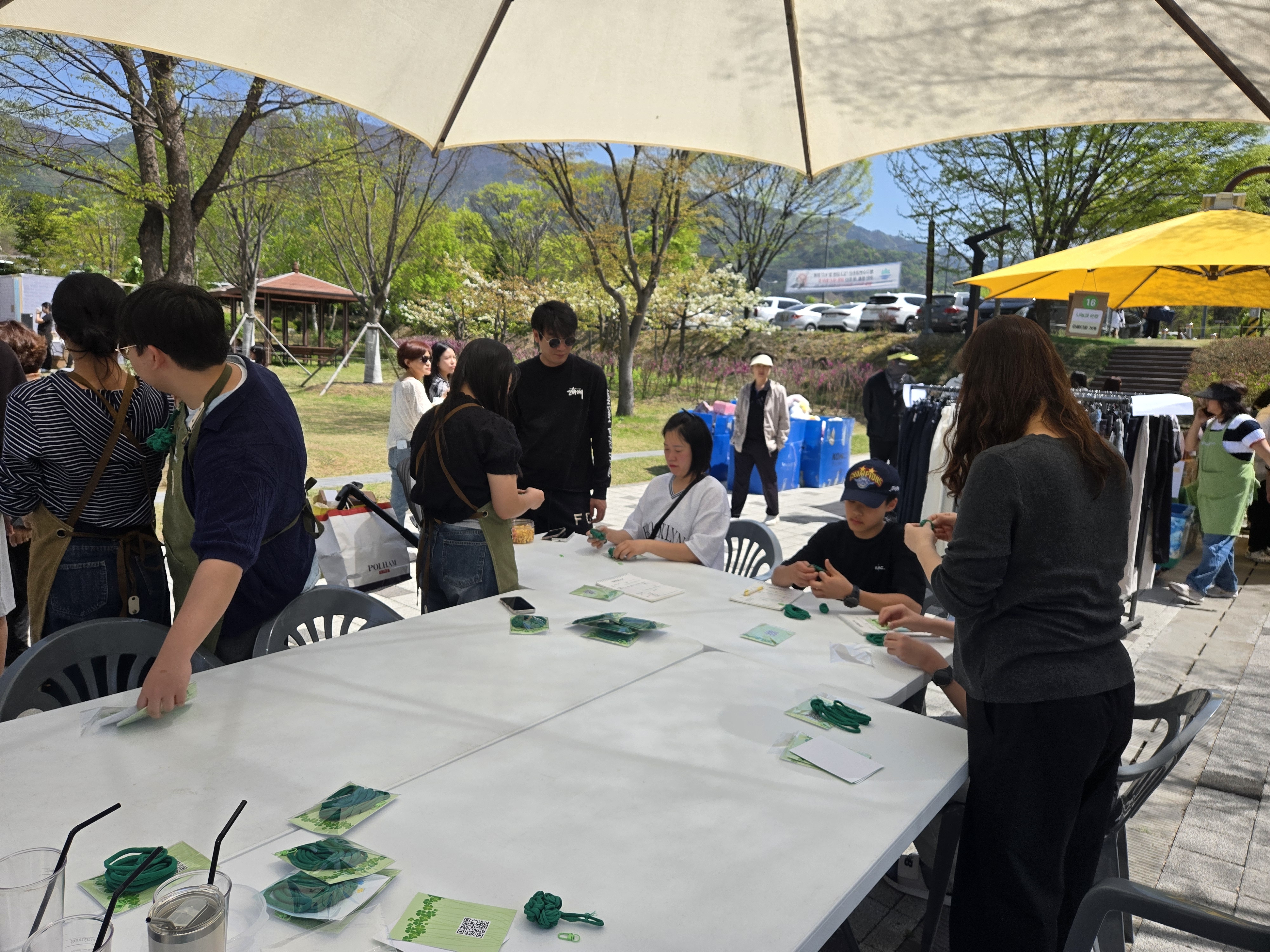 안전부스를 통해 미디어 중독예방 활동을 하였으며 환경부스를 통해 양말목을 활용한 네잎클로버 키링 만들기 활동을 진행했습