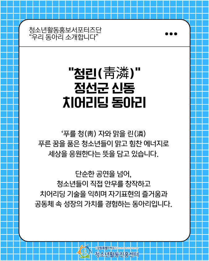 | 제목 | [신동청소년아동장학복지센터] 치어리딩 동아리 '청린'을 소개합니다 | ||||