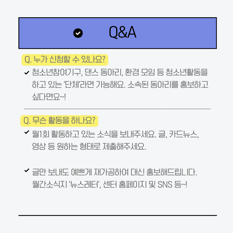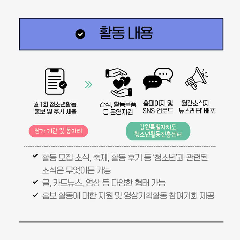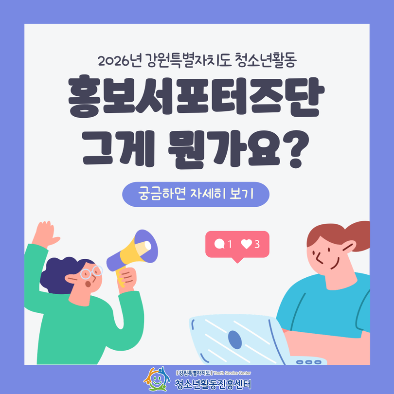 | 제목 | [청소년활동홍보서포터즈단]강원특별자치도 청소년활동 홍보서포터즈단에 대해 소개합니다 | ||||